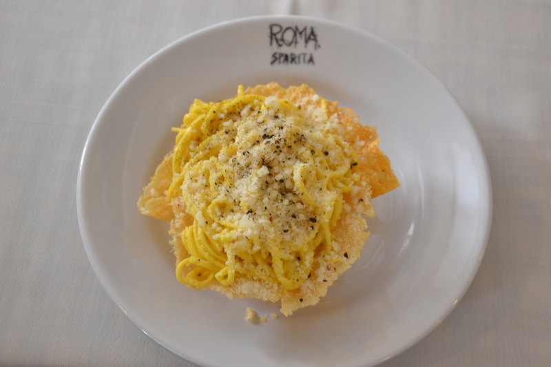 At Ristorante Roma Sparita they serve Tagliolini Cacio e Pepe in a homemade basket of Parmesan cheese.